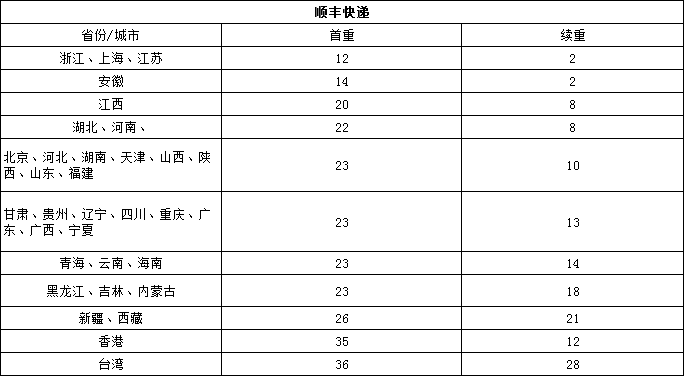 2,部分城市因快遞公司收費較高,不能按此表價格,如有發(fā)到所在城市時我們會另外通知。